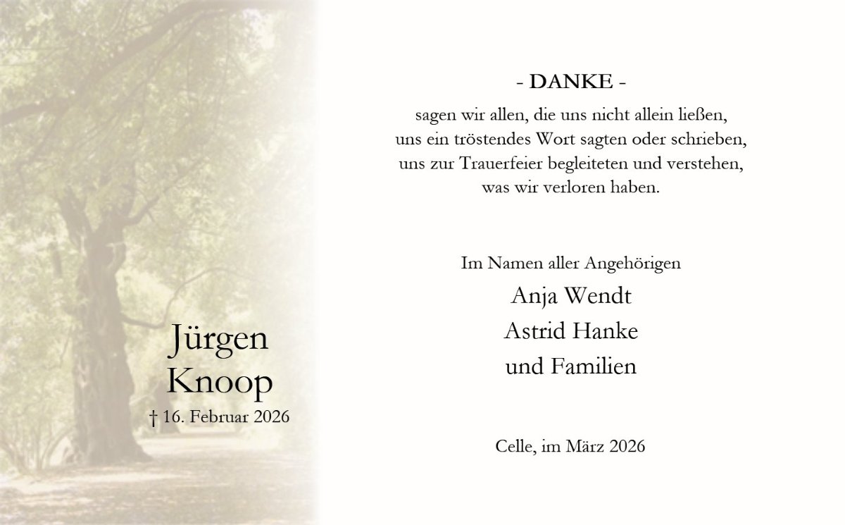wir wünschen Ihnen von Herzen viel Kraft, dass Sie Menschen um sich haben, die Ihnen in dieser schweren Zeit beistehen und Halt geben. Zusätzlich können Sie auf dieser Gedenkseite Erinnerungen teilen und so das Andenken gemeinsam wachhalten.
