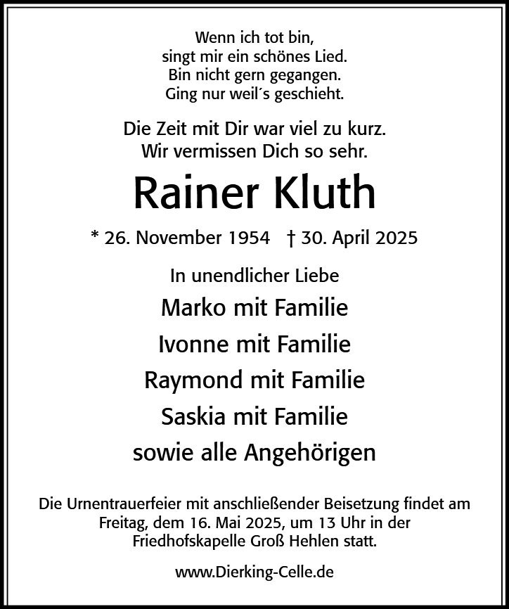 in diesen Tagen fühlen wir mit Ihnen und wünschen Ihnen von Herzen, dass Sie aus den glücklichen Erinnerungen Kraft schöpfen, um positiv in die Zukunft zu gehen. Diese Gedenkseite möge Ihnen dabei helfen, Ihre Trauer zu teilen und das Andenken gemeinsam wachzuhalten.