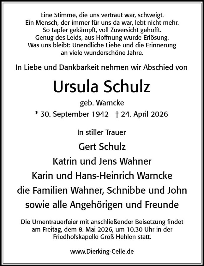 wir wünschen Ihnen von Herzen viel Kraft, dass Sie Menschen um sich haben, die Ihnen in dieser schweren Zeit beistehen und Halt geben. Zusätzlich können Sie auf dieser Gedenkseite Erinnerungen teilen und so das Andenken gemeinsam wachhalten.