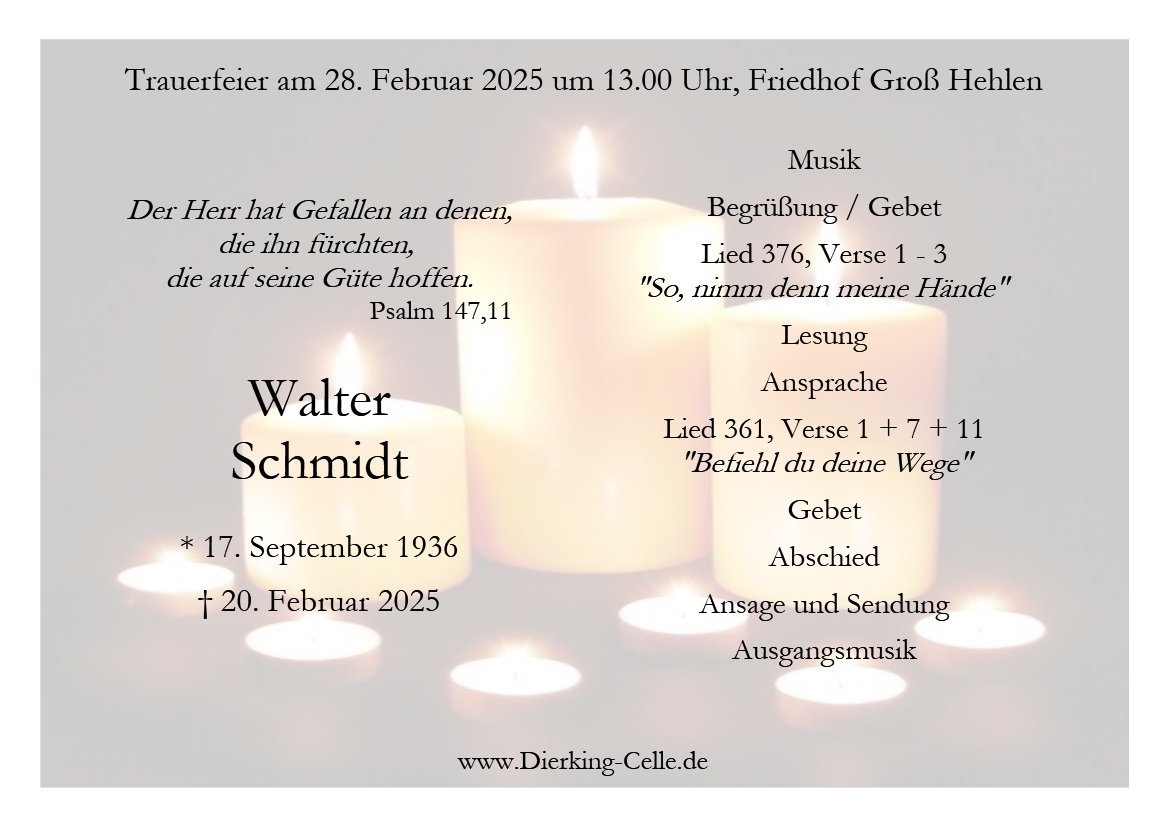 in diesen Tagen fühlen wir mit Ihnen und wünschen Ihnen von Herzen, dass Sie aus den glücklichen Erinnerungen Kraft schöpfen, um positiv in die Zukunft zu gehen. Diese Gedenkseite möge Ihnen dabei helfen, Ihre Trauer zu teilen und das Andenken gemeinsam wachzuhalten.